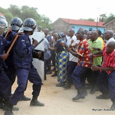 Simulation de la maitrise de manisfestant par la police à Kisangani, décembre 2010.
