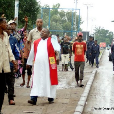 Marche des chrétiens encadrés par la police, le 16/02/2012. Radio Okapi/Ph. Aimé-NZINGA
