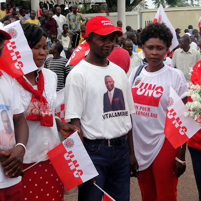 Des militants de l’Union pour la Nation Congolais (UNC) venu accueillir Vital Kamerhe à l’aéroport de Kindu (Maniema), le 17/11/2011. Radio Okapi