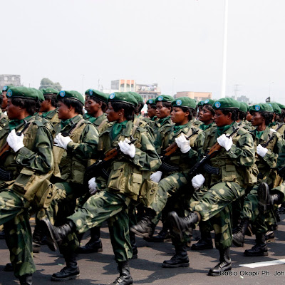 Les femmes soldat de la FARDC marchent ce 30/6/2010 à Kinshasa, lors du défilé marquant cinquantenaire de l’indépendance de la RDC. Radio Okapi/ Ph. John Bompengo Environ 153 sous-officiers ont suivi une formation spéciale de neuf mois à l’Académie militaire de Kananga (Kasaï-Occidental).