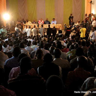 Des opposants congolais le 13/12/2011 dans la salle Fatima à Kinshasa, lors d’une réunion contre des résultats de la présidentielle de 2011 en RDC. Radio Okapi/ Ph.