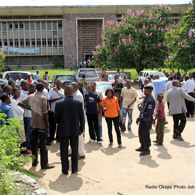 Des professeurs, membres de l’association des professeurs de l’Université de Kinshasa(Apukin) et des étudiants le 2/11/2011, après l’assemblée générale des professeurs au campus universitaire. Radio Okapi/ Ph.