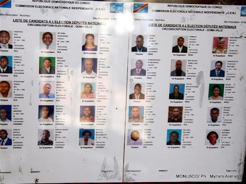 L’une des listes des candidats aux législatives affichées sur le mur d’un bureau de dépôt de candidatures(Ceni) à Goma, RDC. MONUSCO/ Ph. Myriam Asmani