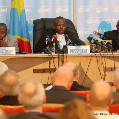 Des membres du bureau de la Ceni le 9/12/2011 à Kinshasa, lors de la publication finale des résultats provisoire de la présidentielle de 2011 en RDC. Radio Okapi/ Ph. John Bompengo Revue de presse kinoise du vendredi 30 mars 2012.