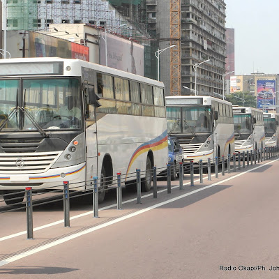L’arrivee d’un dernier lot des bus de la compagnie Transco sur le boulevard du 30 juin le 6/06/2014 à Kinshasa. Radio Okapi/Ph. John Bompengo
