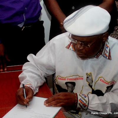 Etienne Tshisekedi dépose sa candidature pour la présidentielle 2011, le 5/09/2011 au bureau de réception, traitement des candidatures et accréditation des témoins et observateurs de la Ceni à Kinshasa. Radio Okapi/ Ph. John Bompengo