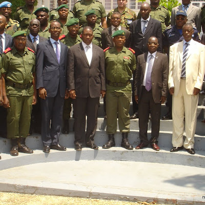 De dorite à Gauche, le chef d’état major général du Rwanda le général James Kabarebe (en costume blanche), le gouverneur du Bas-Congo Simon Mbatshi Batshia, le chef d’état major général de le RDCongo le lt général Didier Etumba, le chef d’état major du Burundi le général major Godefroid Niyombare, le vice-gouverneur du Bas-Congo D