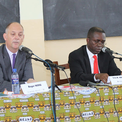 De gauche à droite, Roger Nord directeur adjoint de FMI et Matata Mponyo, ministre des finances de la RDC à Kinshasa. Radio Okapi/ Ph. John Bompengo