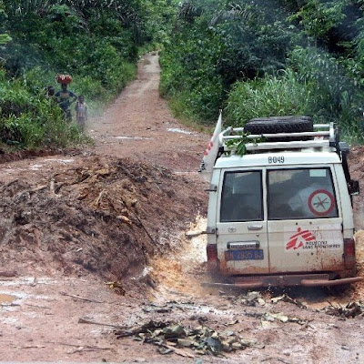 Une jeep de MSF/Belgique en campagne en RDC. Photo: http://www.azg.be/blog/puc/