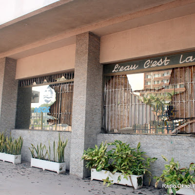 Un des bureaux de la Regideso sur le boulevard du 30 juin à Kinshasa/Gombe, dont les vitres sont cassées sous l’effet de fortes détonations de Brazzaville, dimanche 4/03/2012. Radio Okapi/Ph.