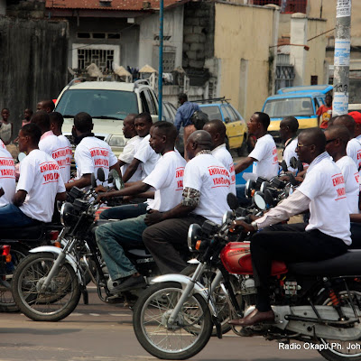 Des motards en cortège ce 8/5/2011 sur une artère principale de Kinshasa, lors de la campagne d’enrôlement des électeurs par la Ceni. Radio Okapi/ Ph. John Bompengo