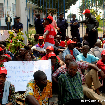 Sit-in de quelques enseignants membres du Syeco devant la primature, le 2/03/2011 à Kinshasa. Radio Okapi/ Ph. John Bompengo