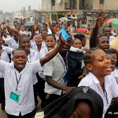Quelques élèves finalistes, célèbrent la fin de la dernière épreuve de l’examen d’Etat ce 23/06/2011 à Kinshasa. Radio Okapi/ Ph. John Bonmpengo